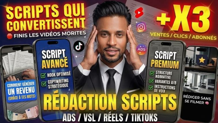 Je vais rédiger vos scripts pour ADS, VSL, RÉELS et TIK TOKS