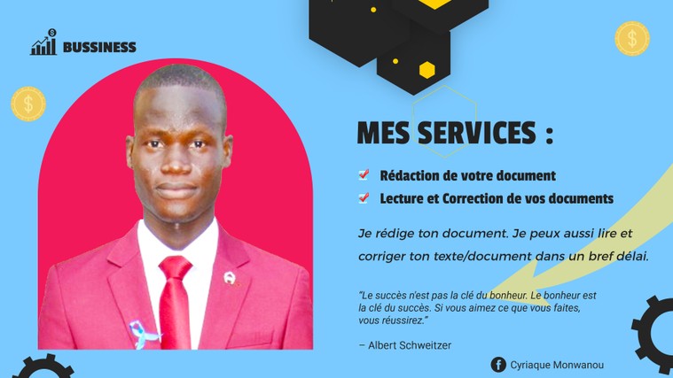 Proposé par Cyriaque_Monwanou •Graphiste, Relecteur de texte et Rédacteur Vente au total 0