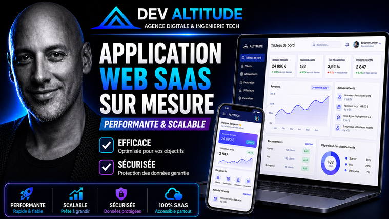 Bienvenue chez DevAltitude — Votre Partenaire Digital et Ingénierie Tech 🚀 Vous recherchez une société d'informatique fiable pour transformer vos idées en solutions numériques performantes ? DevAltitude est une agence digitale établie et enregistrée en France, opérant dans le strict respect des normes juridiques et administratives françaises. Spécialisés dans le conseil et le développement, nous accompagnons les startups, entrepreneurs et PME dans la création de produits digitaux innovants, alliant puissance technique et design épuré. Basée sur une expertise solide en Ingénierie Logicielle, Data Science et Marketing Digital, notre équipe transforme vos défis complexes en outils fluides, sécurisés et rentables. 🛠️ Nos Domaines d’Expertise Nous intervenons sur l'ensemble de la chaîne de valeur de votre projet : Développement SaaS & Web : Conception d’applications web scalables, sécurisées et prêtes à l'emploi. Applications Mobiles : Création d'apps natives ou hybrides (iOS/Android) avec une expérience utilisateur (UX) haut de gamme. Intelligence Artificielle & Data : Intégration de modèles d'IA, automatisation de processus, Business Intelligence (BI) et analyse de données. Visibilité & Performance (SEO) : Optimisation pour les moteurs de recherche (SEO), stratégie de backlinks et acquisition de trafic. Conseil & Architecture : Assistance à la mise en œuvre de systèmes d’information robustes et évolutifs. 💎 Pourquoi choisir l'agence DevAltitude ? 🔹 Structure Française Certifiée : En tant que société de droit français, nous vous garantissons une conformité totale, une facturation transparente et une sécurité contractuelle optimale. 🔹 Approche Premium : Nous privilégions la qualité du code, la sécurité des données et des interfaces modernes et minimalistes. 🔹 Expertise Multidisciplinaire : De la Data Science au SEO, nous couvrons tous vos besoins digitaux sous une seule et même structure professionnelle. 🔹 Accompagnement de Proximité : Une communication fluide, le respect rigoureux des délais et un support technique réactif. 📈 Prêt à passer au niveau supérieur ? Que vous souhaitiez lancer une plateforme SaaS complète, déployer une architecture IA complexe ou propulser votre visibilité avec une stratégie SEO de haut niveau, DevAltitude met son expertise au service de vos ambitions les plus hautes. 👉 Consultez nos services ci-dessous ou contactez-nous directement pour un devis personnalisé. L’altitude de votre succès dépend de la solidité de votre technologie.