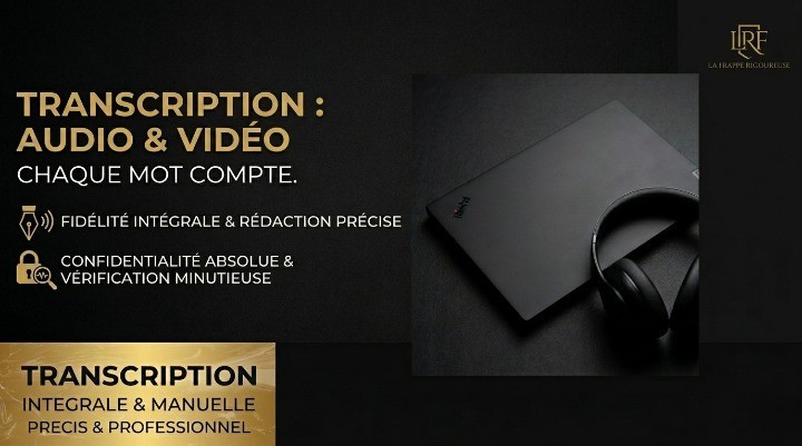 LA FRAPPE RIGOUREUSE : Pas de blabla, juste du résultat. Étudiante en Génie des Réseaux et Télécommunications, la rigueur n'est pas une option pour moi, c'est une habitude. Si vous cherchez une transcription bâclée par une IA ou un texte plein de fautes, vous n'êtes pas au bon endroit. Si vous voulez un travail carré, livré dans les temps et prêt à l'emploi, on peut bosser ensemble. Ce que je vous livre : -Zéro approximation : Chaque mot est écouté et transcrit fidèlement. -Orthographe impeccable : Je ne supporte pas les fautes, votre texte sera propre. -Mise en page pro : Je structure votre document (paragraphes, ponctuation) pour qu'il soit agréable à lire sur Word ou PDF selon votre souhait. Confidentialité totale : Vos fichiers sont supprimés dès que vous validez la commande. Mes tarifs & délais : Offre de base (5 €) : Jusqu'à 10 minutes de fichier audio ou vidéo. Options de durée : Disponibles pour traiter vos fichiers jusqu'à 1h et plus (voir la grille des options). Délai de sécurité : Je livre généralement sous 24h pour les petits volumes. Pour les fichiers plus longs, je m'accorde 48h (ou 72h pour les grandes durées) pour garantir une double relecture rigoureuse. Le deal est simple : Vous m'envoyez votre audio, vidéo ou lien (YouTube/Drive), je m'enferme avec mon clavier, et je vous rends un travail dont vous serez fier. Prêt à passer à la vitesse supérieure ? Choisissez votre option et lançons la commande.