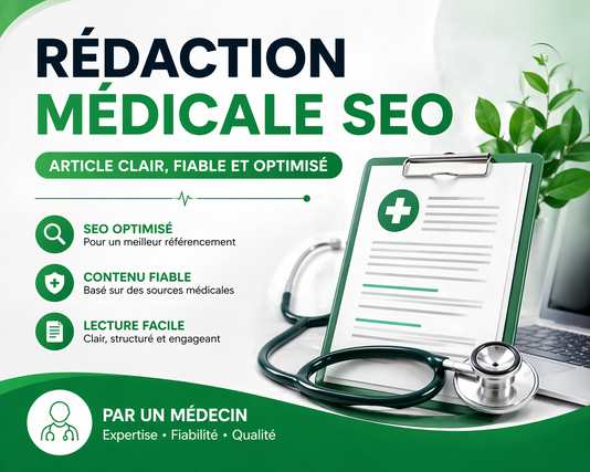 En tant que médecin, je vous propose la rédaction d’articles médicaux clairs, rigoureux et optimisés SEO, adaptés à votre public cible.