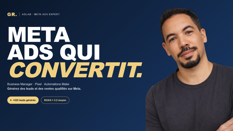 Je configure votre stratégie Meta Ads de A à Z — Business Manager, Pixel Meta, audiences segmentées, copywriting, créatifs, landing page optimization, et automation Make pour synchroniser vos leads avec votre CRM en temps réel.