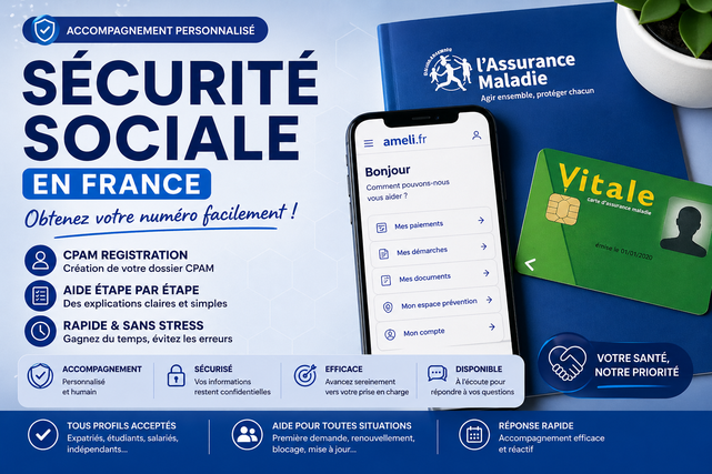 Je vous accompagne dans vos démarches pour obtenir votre numéro de sécurité sociale en France (CPAM).