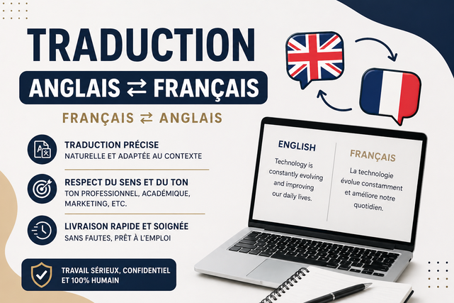 Ingénieure en robotique de formation, j’ai développé tout au long de mon parcours académique — jusqu’à l’obtention de mon diplôme — des compétences solides en analyse, rigueur rédactionnelle et maîtrise des langues. Au-delà de mon domaine technique, j’ai acquis une véritable aisance en traduction anglais ↔ français (EN ⇄ FR) ainsi qu’en rédaction de contenus clairs, structurés et précis. Ces compétences, ainsi que ma passion pour l'écriture et le dessin, me permettent aujourd’hui de proposer des services fiables et de qualité, adaptés aux besoins de chacun. Je mets désormais mon savoir-faire au service des particuliers et des professionnels sur ComeUp, avec pour objectif de fournir un travail sérieux, soigné et respectant les délais. Je propose notamment : Traduction anglais vers français (EN → FR) Traduction français vers anglais (FR → EN) Rédaction de contenus Reformulation et correction de textes Création de logo Je m’engage à vous accompagner avec professionnalisme, efficacité et confidentialité. N’hésitez pas à me contacter pour discuter de votre projet !