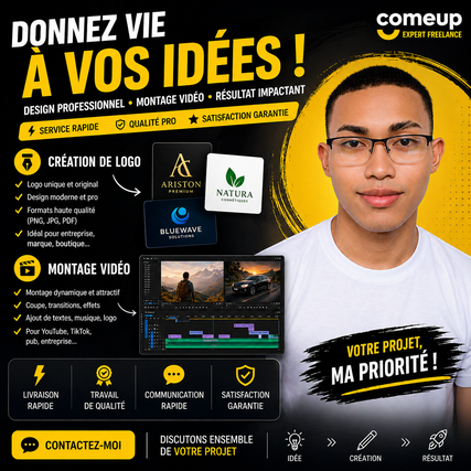 Je suis un freelance passionné par le design graphique et le montage vidéo. Mon objectif est de vous aider à améliorer votre image et attirer plus de clients grâce à un visuel professionnel et moderne.