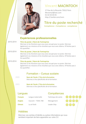 Selon votre demande j'adapterai la mise en page du CV (police, couleurs etc...)