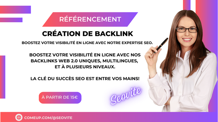 Top serviceProposé par Seovite Ventes au total 3 841 Disponible sur ComeUp Direct