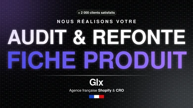 Votre succès, notre mission Spécialisés dans la création, la refonte et l'optimisation de sites sur Shopify, notre objectif est simple : propulser votre marque vers le succès en construisant des écosystèmes E-Commerce performants, sur mesure et adaptés à vos besoins. Nous nous engageons à vous accompagner à chaque étape de votre projet, en vous fournissant les meilleures stratégies pour maximiser vos chances de réussite. 💻 Une équipe de spécialistes à votre service Notre équipe composée de 9 experts passionnés et dédiés se tient prête à transformer vos idées en réalité. Voici les talents qui font la force de notre agence : Kévin, CEO : Vision stratégique et leadership, Hugo, Chef de Projet : Coordination et gestion de projets, Wisseme, Directeur Artistique : Créativité et direction visuelle, Caroline, Chef marketing : Gestion marketing et mailing, Léa, Copywriter : Rédaction persuasive et storytelling, Romain, Développeur : Solutions technologiques innovantes, Léa, Créatrice de contenu : Engagement et création de contenu original, Léa, Webdesigner : Spécialiste design UX et ergonomie, Marine, Webdesigner : Design intuitif et focus expérience utilisateur. Avec un engagement constant envers la personnalisation et l'excellence, notre équipe est là pour vous offrir des solutions adaptées à votre projet et vous faire atteindre vos objectifs. 📈 Une expérience reconnue et des résultats concrets Forts de plus de 5 années d’expérience, nous avons accompagné plus de 2.000 clients satisfaits sur la plateforme. Notre expertise est reconnue à travers les années, et nous figurons parmi les leaders de la niche E-Commerce sur ComeUp. Nos classements : 🎖️ 2024 – Top 5 vendeurs | Top 1 dans la niche E-Commerce 🎖️ 2023 – Top 6 vendeurs | Top 1 dans la niche E-Commerce 🎖️ 2022 – Top 6 vendeurs | Top 1 dans la niche E-Commerce 🎖️ 2021 – Top 5 vendeurs | Top 1 dans la niche E-Commerce 🎖️ 2020 – Top 4 vendeurs | Top 1 dans la niche E-Commerce Ces résultats témoignent de notre expertise et de notre capacité à fournir des résultats concrets pour nos clients 🚀 Prêt(e) à faire évoluer votre marque ? Contactez-nous ! Il est temps de prendre votre projet en main avec l’Agence GLX ! 📞 Contactez-nous dès maintenant pour réserver un rendez-vous téléphonique offert de 30 minutes sur ComeUp Direct. Besoin d’un renseignement ? Notre équipe est disponible 7j/7 pour vous conseiller et vous accompagner dans la réalisation de vos projets. Rejoignez les +2.000 clients satisfaits qui ont fait confiance à l’Agence GLX pour booster leurs ventes en ligne ! 🌟